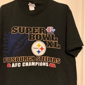 PITTSBURGH STEELERS SUPER BOWL XL SIZE MEDIUM T-SHIRT. COTTON, 20.5" ARMPIT TO ARMPIT, 29" LONG. Good condition.