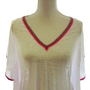 PITUSA GORGEOUS WHITE FLUTTER SLEEVES PULLOVER TOP/SWIM COVER SIZE SMALL