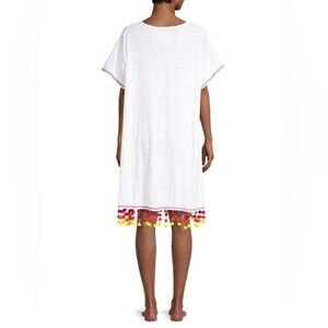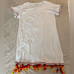 Coverup T-Shirt dress trimmed with vibrant pom-poms at the hem.