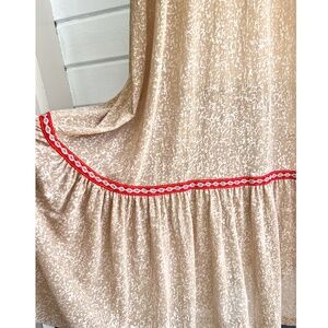 Peruvian cotton blend. Hand wash cold. Unlined. Semi-sheer burnout fabric. Adjustable tie shoulders with strawberry tassel accents. Made in Peru. Revolve Style No. PITR-WD36.