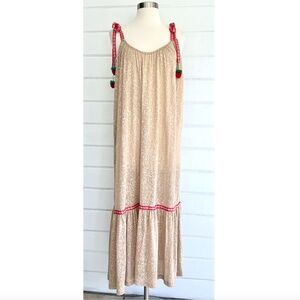 PITUSA Tie Up Strawberry Pom Pom Cover Up Dress in Nude - O/S