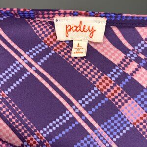 PIXLEY STITCH FIX BRAND Blouse Women L Roll Tab Sleeve Pink Purple Blue Plaid