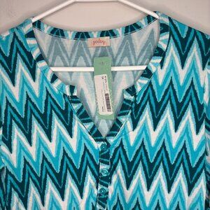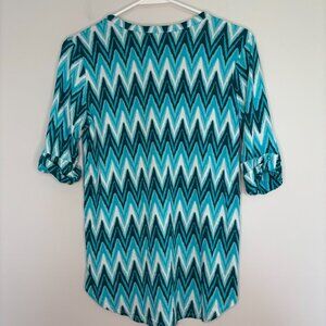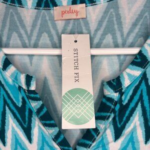 PIXLEY STITCH FIX NEW Top Women XS Teal V-Neck Roll-Tab Sleeve Edmond Henley