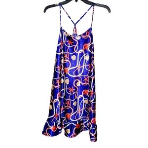 PJ Couture vibrant navy blue sleep dress silky polyester with ruffle bottom