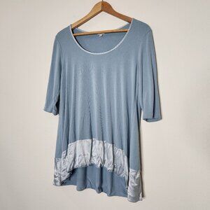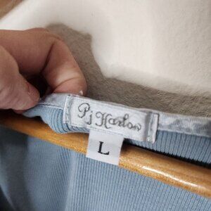 PJ Harlow Kiki Womens Large Blue Pajama Top Supima Cotton Satin Trim