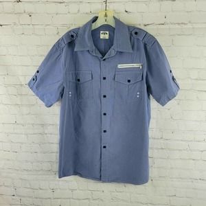 PJ Mark Short Sleeve Collared Button Down Shirt w/Front Pockets Size Large