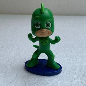 PJ Masks Gekko toy figurine. This is a cake topper with Gekko standing on a blue stand, or can be used with a PJ Masks toy collection as well. Stands 3" tall and this is a non-posable figurine.