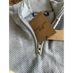 The PJ PAUL JONES Men's Quarter Zip Sweater is a stylish and versatile piece perfect for casual occasions. Made of lightweight polyester material, this slim fit sweater features a tight-knit design with a solid gray color. The long sleeves, collared neckline, and 1/4 zipper accent add a touch of classic and preppy style. Whether you're taking a walk, golfing, or simply relaxing, this sweater is suitable for all seasons and is machine washable for easy care. Perfect for the modern man looking for a designer touch to their wardrobe.