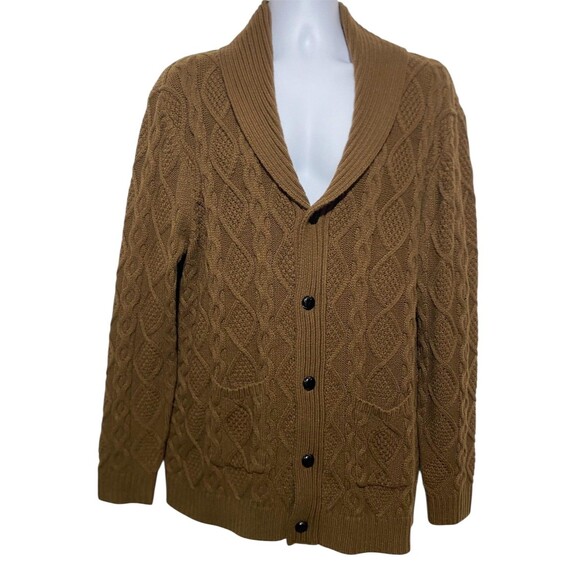 PJ Paul Jones Cardigan Sweater Mens XL Brown Shawl Collar Cable Knit Button Up