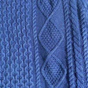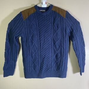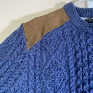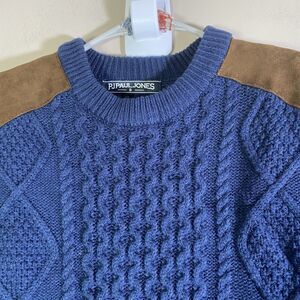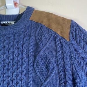 PJ Paul Jones Mens Size Small 3D Cable Knit Blue Sweater Shoulder Patches