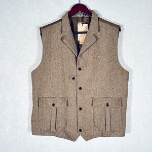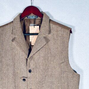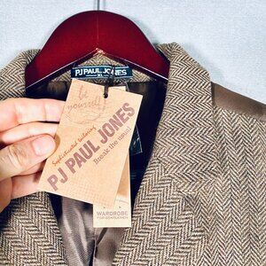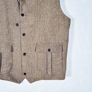PJ Paul Jones Suit Vest Mens XL Brown Herringbone Tweed Wool Blend Waistcoat