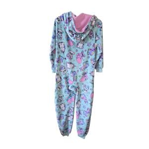 PJ Place 1 Piece Hooded Pajama Fleece Size L Inseam 24" Unicorn Bear Print