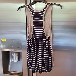 A heathered front and striped back add summer style to a comfortable racerback tank that's perfect for lounging