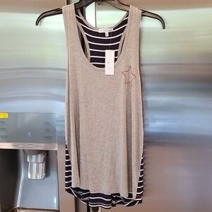 💕PJ SALVAGE💕 Star Struck Striped Lounge Tank Top Heather Gray Medium M NWT