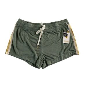 PJ SALVAGE Womens Small Gold Star Status - Sage Green - gold star on back pocket - gold white stripe down side- Sleep Lounge Shorts - drawstring- so soft!