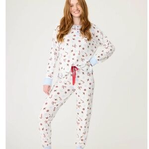 PJ Salvage Candy Cane Waffle Thermal Ski Jammie Set Size Large