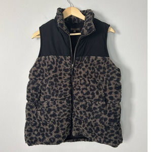 P.J. Salvage El Captain Women's Sherpa Vest Black Leopard Cheetah Print Size Med
