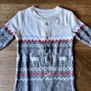 PJ Salvage cozy sweater sleeper/romper in fair isle print. Perfect for cold weather. ❄️