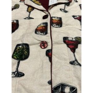 PJ Salvage Flannel Pajama TOP Button Down Women XS CHEERS Wine COCKTAILS