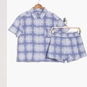 PJ Salvage Graphic Short Pajamas flannel medium Set shorts shirt NWT