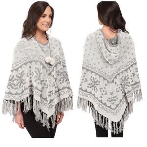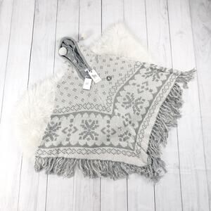 P.J. Salvage Gray Fair Isle Reversible Knit Poncho S/M Asymmetrical Hemline NEW