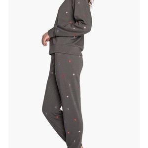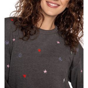 PJ Salvage Love Life Embroidered Fleece Pajamas Size Medium