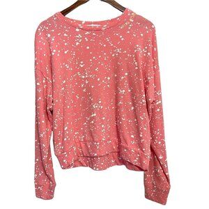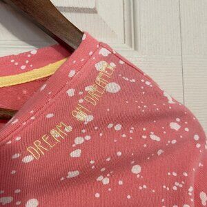 PJ Salvage Women's Pink Flick Of A Brush Dream On Dreamer Terry Pullover Sweatshirt Small. Be a ray of light in our soft cotton terry, modern sweatshirt with paintbrush-flick print. Bright, comfy lounge top with embroidery at neckline that reads "dream on dreamer". COLOR: Coral, FABRIC: 100% cotton beach terry. CARE: Cozy items are delicate. Handle with care and machine Wash cold. Do not bleach. Tumble dry low. Measurements Shoulder to shoulder: 25" Underarm to underarm: 25" Length: 23" Sleeve: 21" Offers always welcome! Measurements are approximations taken while hanging