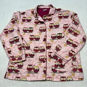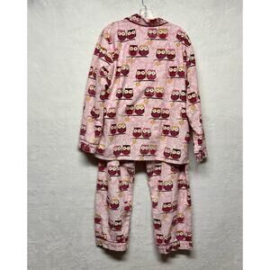 P.J. Salvage Owl Print Pink Flannel Long Sleeve 2 pc. Pajama Set Size L
