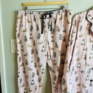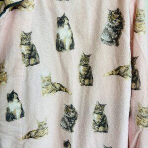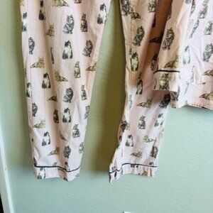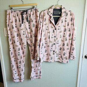 PJ Salvage Pink Cat Print Flannel Pajama Set Cotton Button Front L Like New