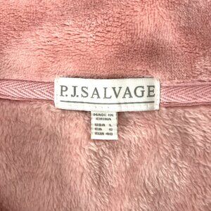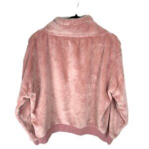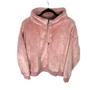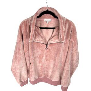 P.J. Salvage Pink Plush Velour Pullover. Cozy soft pink longsleeve pullover, drawstring funnel neck, pink & silver 1/4 zipper with a round silver pull, ribbed cuffs and hem. 100% Poly Size L (26" PtP x 24" L x 21" L Sleeves - sleeve seam to end of cuff) In Excellent New Condition.