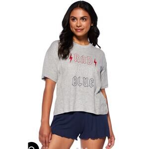PJ Salvage Rad White Blue Graphic Loungewear Tee Gray S