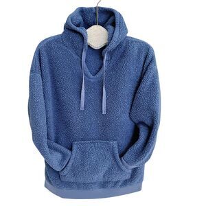PJ Salvage Size M Denim Blue Cozy Sherpa Fleece Pullover Hoodie w Drawstrings