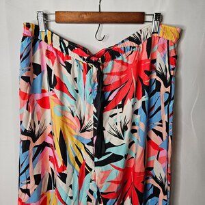 P.J. Salvage Size XL Tropical Staycation Palm Print Rayon Pants Colorful