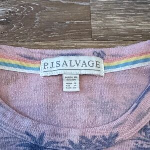 Vibrant pajama set with palm tree pattern. Features pink, yellow, and blue shades. Perfect for cozy nights.