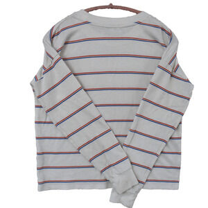 PJ Salvage Sweatshirt Top Womens Size Small Striped Oversize Fit Lounge Top. White terry sweatshirt with red and blue small stripes