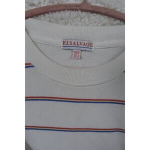 PJ Salvage Sweatshirt Top Womens Size Small Striped Oversize Fit Lounge Top. White terry sweatshirt with red and blue small stripes