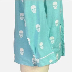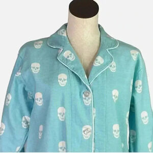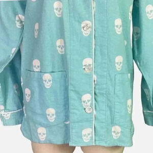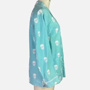 PJ Salvage Women XS WARM Aqua Blue/White SKULLS Flannel Pajama Top KIND IS COOL