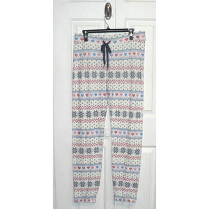 P.J Salvage Women's Fair Isle Print Fleece Pajama Bottoms in White Multi MD $30