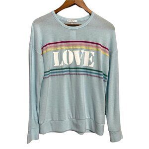 PJ Salvage Womens NWT Blue Aqua Rainbow Striped Love Crew Neck Sweatshirt Medium