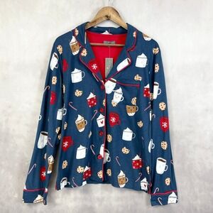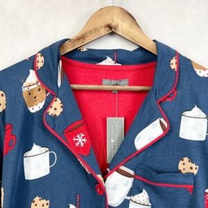 PJ Salvage Womens Pajama Set M/L Hot Cocoa Cookie Print Holiday Lounge Comfy