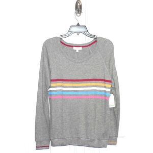 P.J. Salvage Women's Striped Thermal Pajama Top in Grey Multi Medium Stripe $30