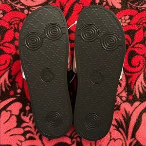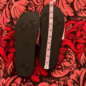 Brighten your look with these PJ Salvage sandals. Features a tropical pattern with red, blue, and black. Perfect for casual wear.