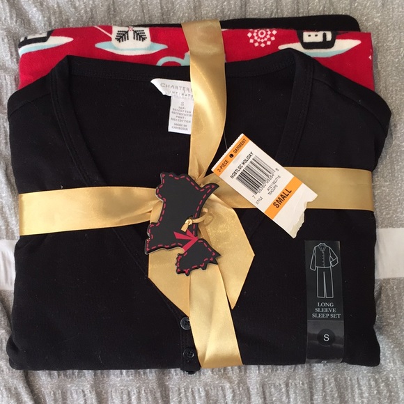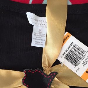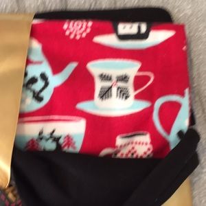 🆕 Never been worn. Two piece set- top is a black long sleeve and pants have tea cups on them