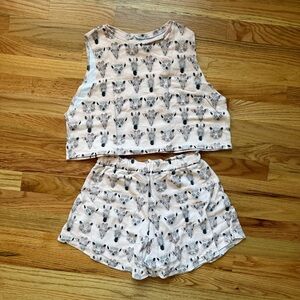 Pink crop top and shorts pj set. Made by me.