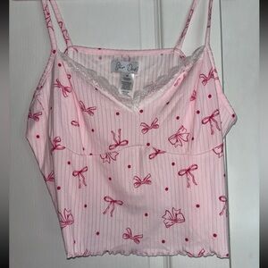 Baby pink two peice pajama set. Never worn. Coquette inspired with pink bows. Super soft and pretty. No flaws !