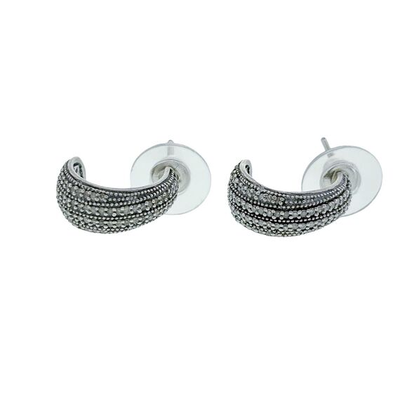 Title: PJ Sterling Silver Oxidized 925 0.36tcw Diamond Graduated Half Hoop Earrings