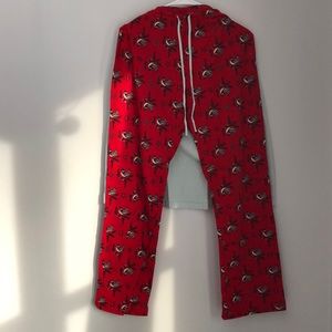 Bird pj set. Light green blue long-sleeve shirt paired with red bird designed pants. Very comfortable. Barely worn.
