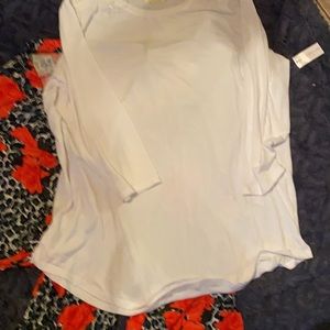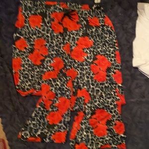Ladies pajama pants with white shirt three-quarter length sleeves.