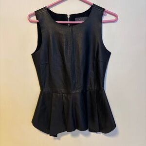 PJK Patterson J. Kincaid Erin Pleated Peplum Sleeveless Leather Blouse Top in Black and Womens Size XS. Gently used and in excellent condition.
