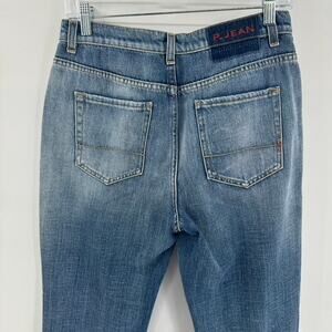 P_Jean Pinko Relaxed Irina Cigarette Jeans Sz 28 Blue Dual Tone Mid-Rise